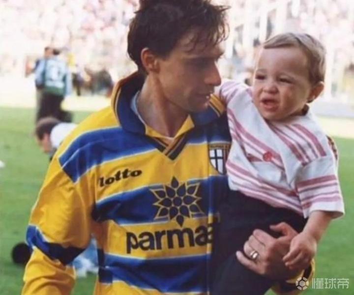 处于职业生涯巅峰期的意大利国脚基耶萨(效力帕尔马期间),在1998年意大利杯夺冠庆典上怀抱幼子的场景,成为其子小基耶萨首次进入公众视野的标志性时刻。